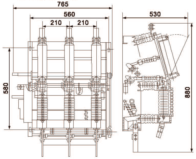 该型高压真空负荷开关及组合电器, 适用于三相交流10kV、50Hz的电力系统中,或与成套配电设备及环网开关柜。