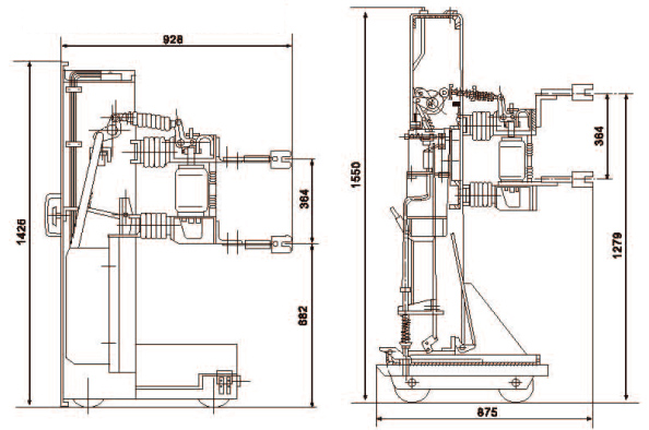手车是开关的核心部件之一-,用钢板弯制焊接而成,底部装有四只滚轮,能沿水平方向移动,还装有接地触头、导向装置、锁定机构及手车进出手摇机械装置。