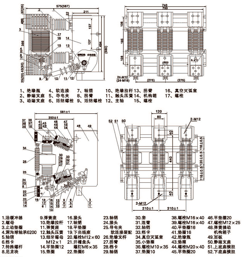 ZN12-12户内高压真空断路器外形安装尺寸