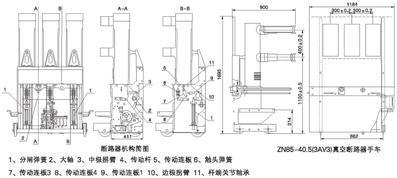 断路器采用灭弧室在上,机构在下的整体布置的结构,利于调试。 采用空气与有机材料复合绝缘结构,设计紧凑,重量轻。 简单的弹簧操作机构,10000次操作免维护。丝杠推进机构,省力、平稳、自锁性能好。